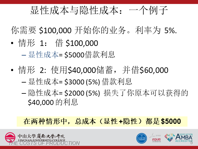例如:支付给工人的工资 - 隐形成本:不需要企业支付货币的投入成本